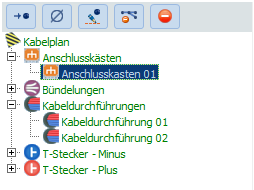 Der Arbeitsbereich Kabelplan besteht aus 5 Teil-Toolbars: